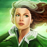 brown hair, is wearing what looks like an X-Men uniform or outfit with green accents, and she has her hair flowing behind her as if caught in a wind. The art style suggests it might be a piece of fan art or
