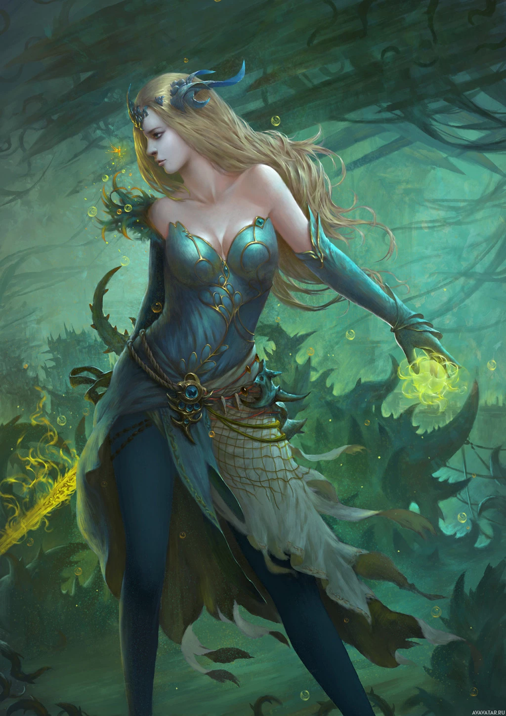 a female character from a fantasy setting. She has