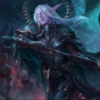 dark elves in Dungeons & Dragons mythology. The artwork is detailed and vibrant, showing the character equipped with armor and wielding a weapon that seems to be a staff. The background suggests a moody or ominous setting, fitting for an adventurer of this type.
