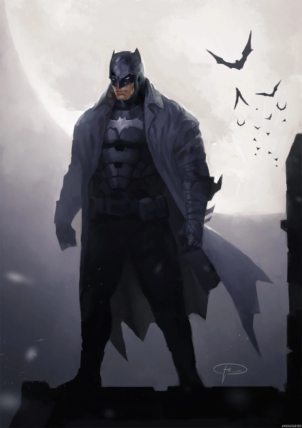 signature costume, which includes a cowl, cape, and emblem on his chest. The artwork conveys a sense of mystery and superhero aura, consistent with the character's persona as