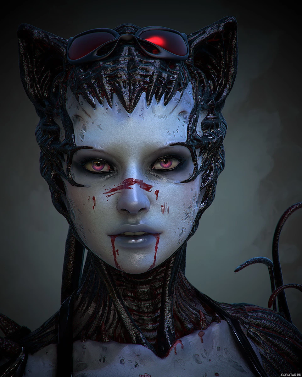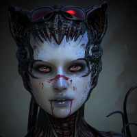 bloodshot eyes, which adds to the sci-fi theme and potentially implies that this character is involved in action or battle. The artwork is detailed and gives off a sense of being part of