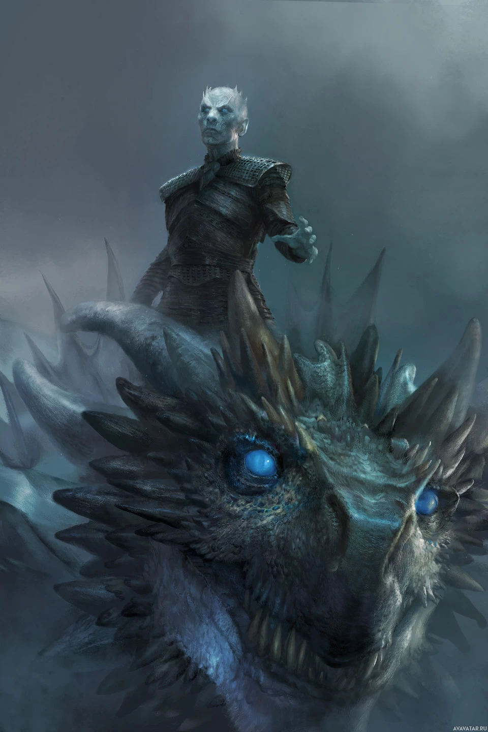 Game of Thrones" riding on the back of a dragon. The character is wearing armor and has
