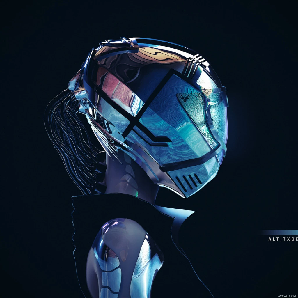 advanced technology or cybernetic integration. The background is dark and moody, emphasizing the figure and the helmet. There are also references to "altidude" in the image, which could be