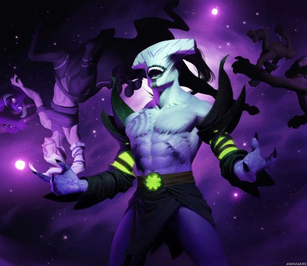 a dynamic pose, possibly mid-action or casting a spell during a match. The background features