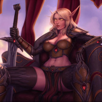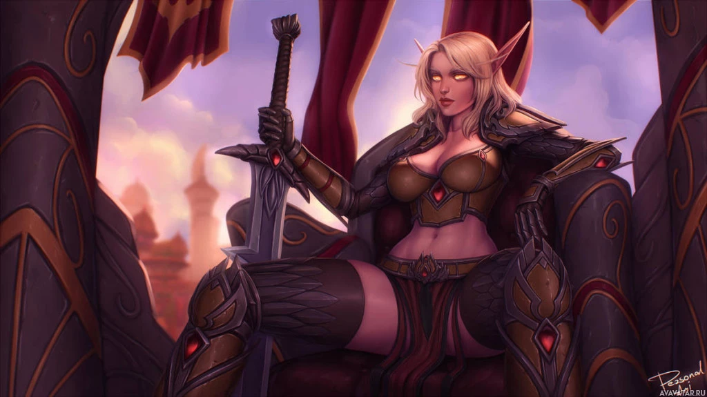 intricate designs, suggesting she may have some form of royalty or leadership position within her culture. Her attire includes elements that are typical for fantasy-themed characters, such as the crown-like accessory on her head and the stylized armor with what seems to be