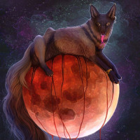 fantasy art, and it could be associated with themes such as celestial creatures, mystical animals, or otherworldly landscapes. The fox is portrayed in