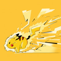 Pikachu character from the Pokémon franchise. It appears to be a high-energy scene with Pikachu charging forward at