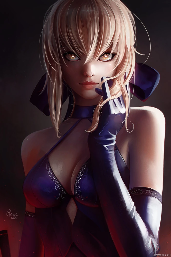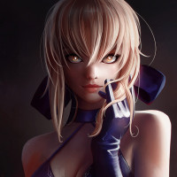 a black top with lace details and matching leather gloves or boots. The overall style of the artwork suggests it could be from