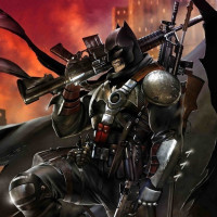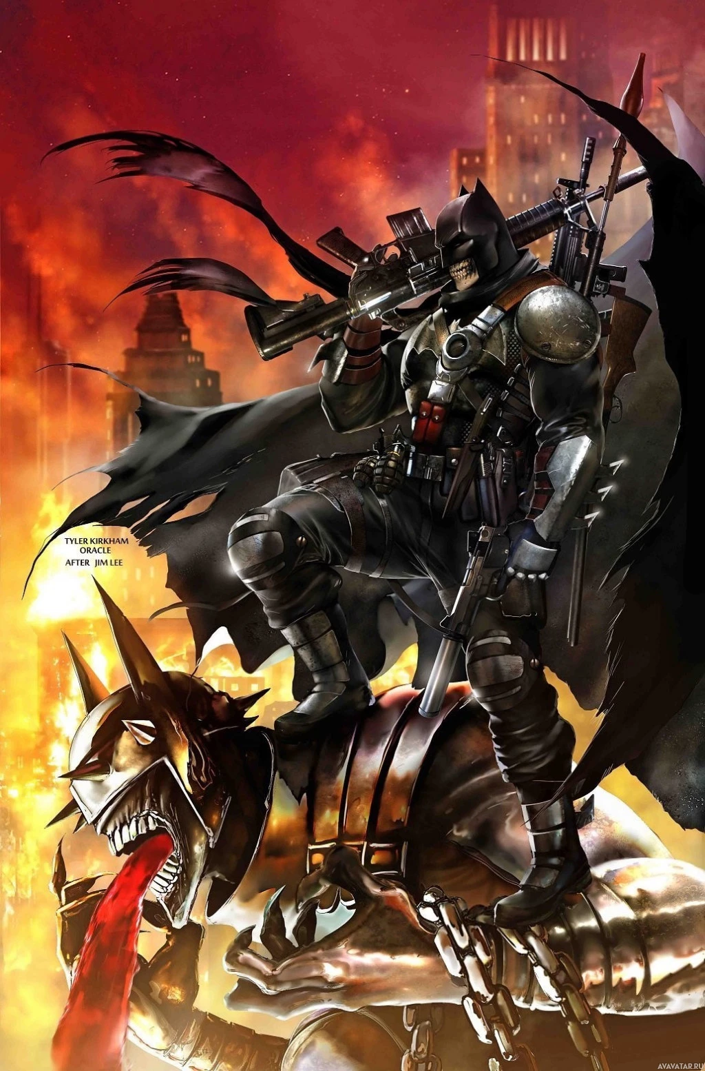 The image features a character that appears to be a fusion of Batman and other elements, possibly inspired by the Dark Knight
