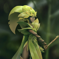 The image shows a figure that appears to be a fantasy or fairy character, standing amidst what looks like