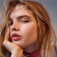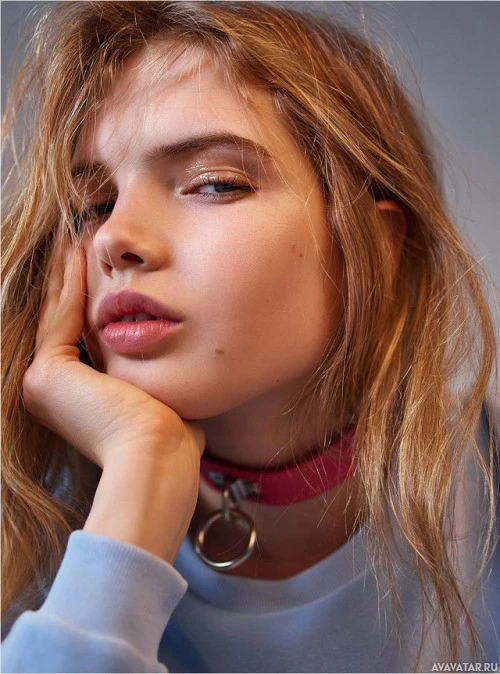 На картинке изображена женщина, позирующая для портрета. У нее светлые волосы и, кажется, она носит макияж, который подчеркивает ее черты. Она смотрит немного в сторону от камеры с созерцательным выражением на лице. Фон нейтральный, обеспечивая четкий фокус на ней.