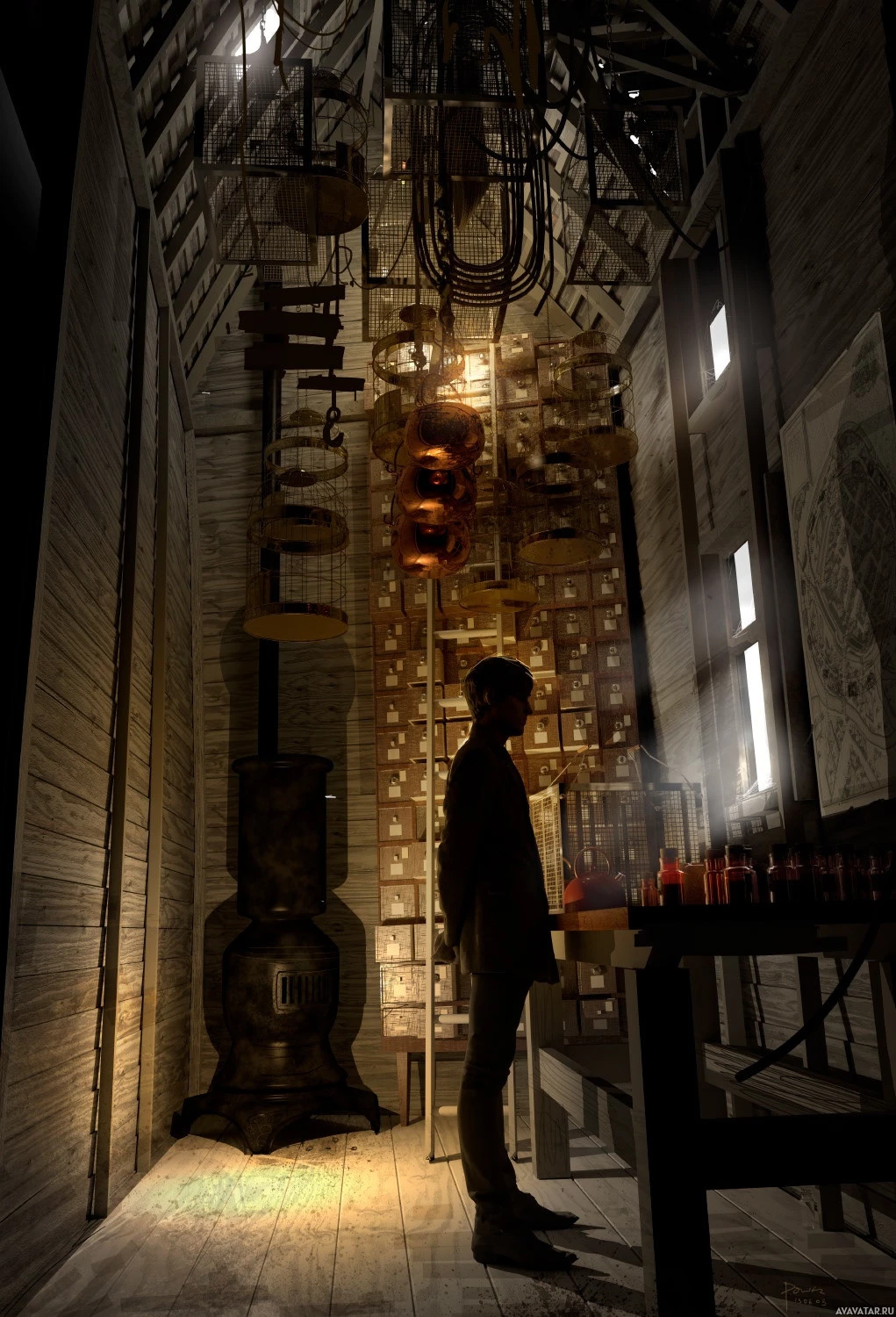 artificial lights illuminating certain parts of the room. It's important to respect privacy and not make assumptions about individuals based on their silhouette in an image.