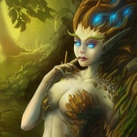 The image depicts a fantasy-themed character. She appears to be