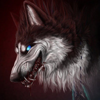 an artistic rendition of a werewolf character. It features the face and upper torso of what appears to be a wolf with human-like characteristics, such as