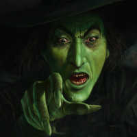 the Wicked Witch of the West from the story "The Wonderful Wizard of Oz" by L. Frank Baum. She is wearing a pointed witch's hat and has a green complexion with dark eyes, which are typical features associated with fantasy witch characters in