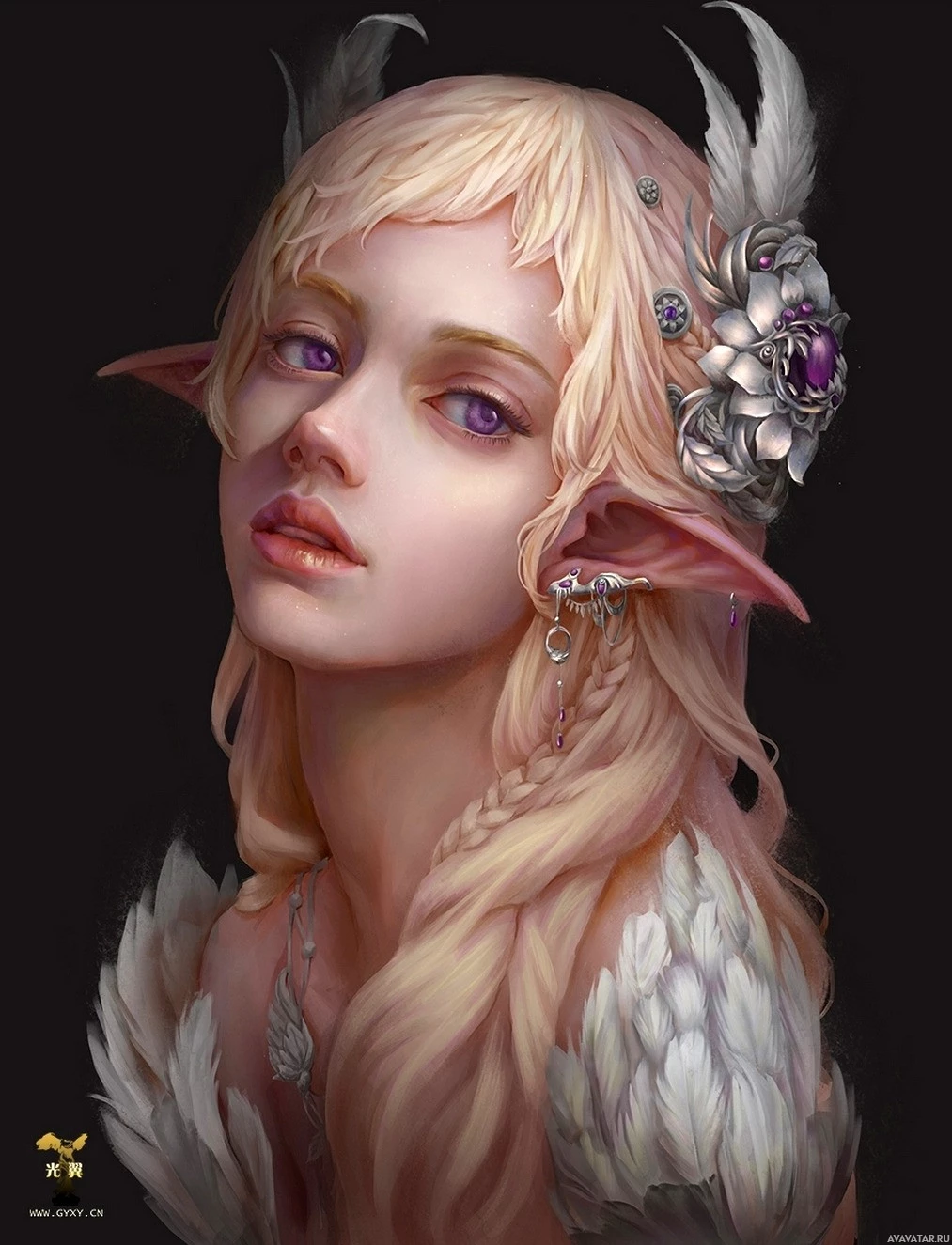 an elf character. The elf has pointed ears, a delicate face with
