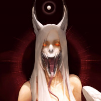 The image depicts a fantasy or horror-themed character. It features a figure with an eerie, ghostly appearance, highlighted by the demonic or monstrous elements such as sharp teeth and possibly