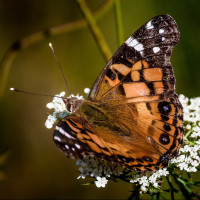 The picture features a butterfly, which is an insect. It is resting on what appears to be a flower or foliage that has