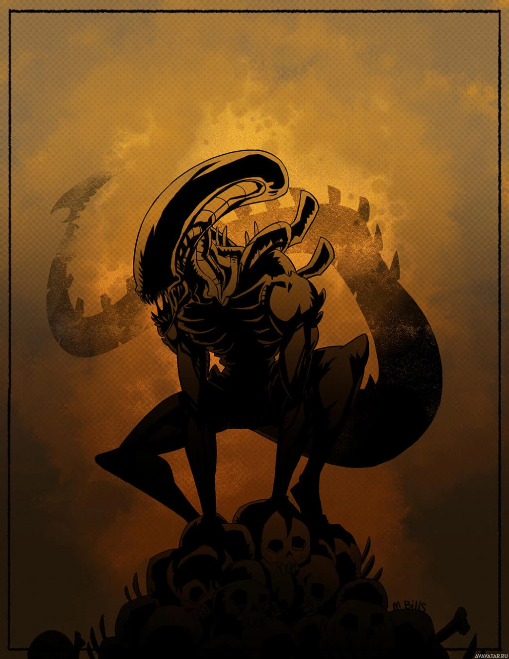 alien character from the "Aliens" movie franchise. The creature is depicted in