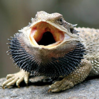 an open mouth, possibly vocalizing or panting. This
