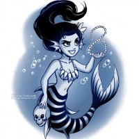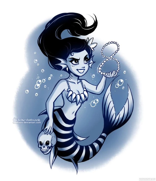 The image features a cartoon-style mermaid. She is depicted with