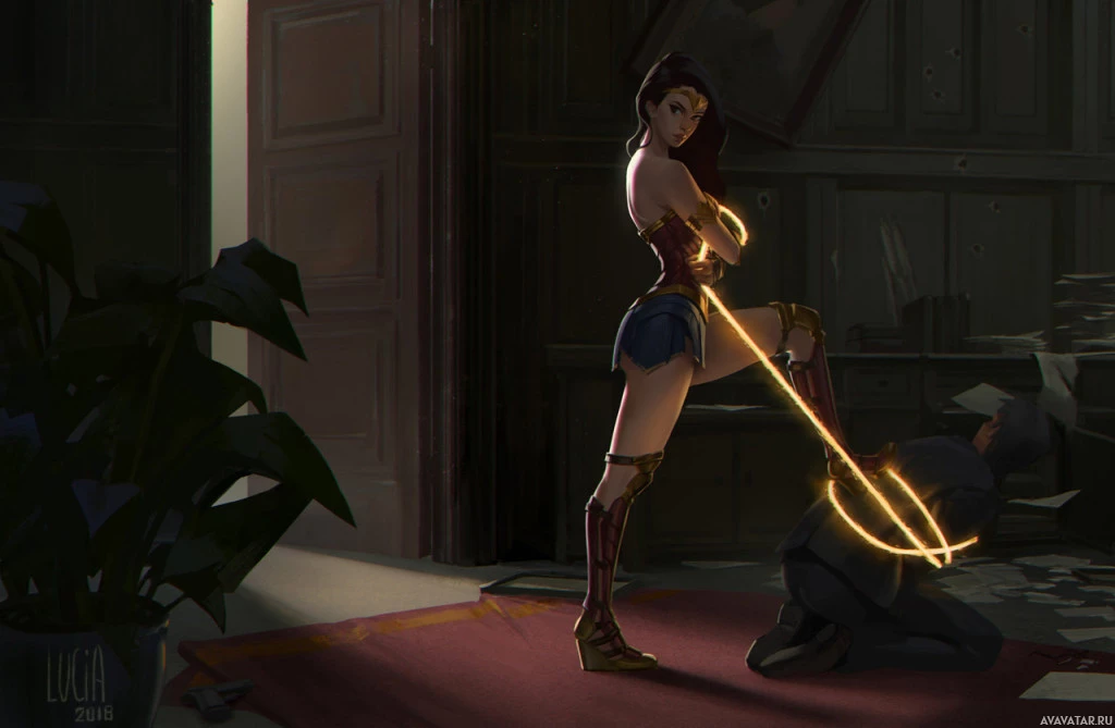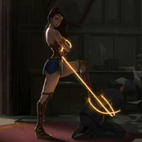 The image shows a character that appears to be Wonder Woman, a fictional superheroine in