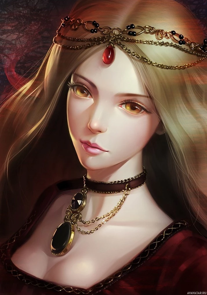 a fantasy setting, possibly a princess or a character with royal status. The artwork has