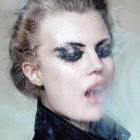 The image features a woman with a dramatic makeup look and style. She appears to be blowing bubbles or smoke, possibly in an artistic or fashionable context. Her expression is intense, which complements the overall edgy vibe of her appearance.