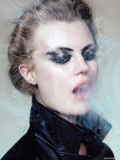 На картинке изображена женщина с драматическим макияжем и стилем. Она, кажется, вдувает пузыри или дым, возможно, в художественном или модном контексте. Ее выражение интенсивное, что дополняет общую волну ее внешности.