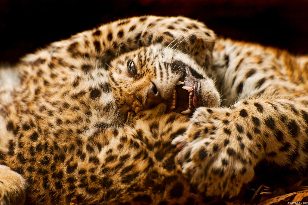 леопарды | Скачать аватары с леопардом | Leopards | Маленький леопард обнимается с литерматами