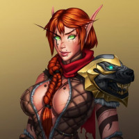 red hair, wearing fantasy-style armor and carrying what appears to be a magical staff or wand. The background is simple and does not distract from the central figure, which suggests that this image may have been created for role-playing games,