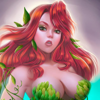 The image shows an illustration of a character that appears to be inspired by Poison Ivy,
