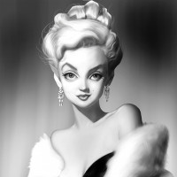blonde hair and striking makeup. She is styled in a way that suggests she could be a character from the mid-20th century, possibly inspired by