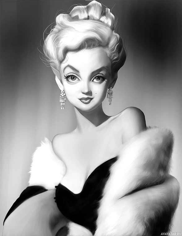 a fur garment, adding to her glamorous appearance. The image has a vintage feel due to its subject matter and color palette.