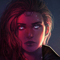a serious expression on her face and is wearing what appears to be some sort of armor or protective gear. This style of illustration suggests it could be related to