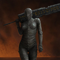 a fiery environment that could imply a battlefield or some sort of apocalyptic setting. The style of the image is reminiscent of fantasy artwork often found in