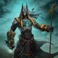 The image features a stylized, fantasy-themed character. This character is depicted as an Anubi, which is commonly associated with ancient Egyptian mythology and is often represented as
