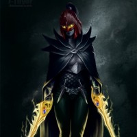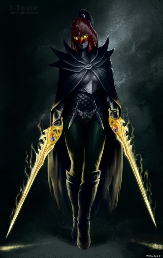 an illustrated character from the game Dota 2, known as Phantom Assassin. She is a playable
