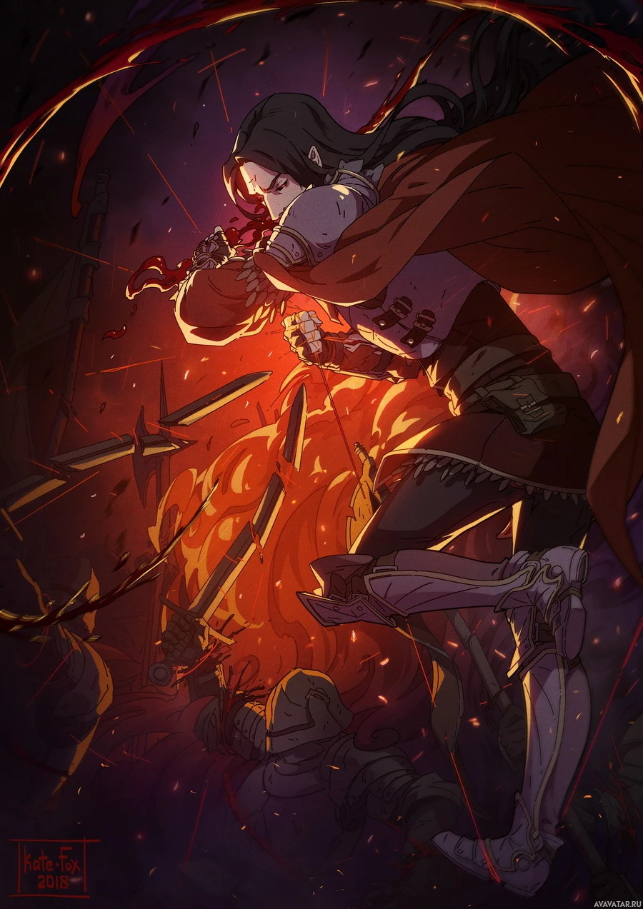 fantastical creatures or characters that are involved in the conflict. This artwork showcases a blend of fantasy elements often found in