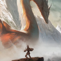 a defensive stance, suggesting a potential confrontation with the dragon. The overall atmosphere of the image conveys a sense of tension and adventure typical of fantasy genre artwork.