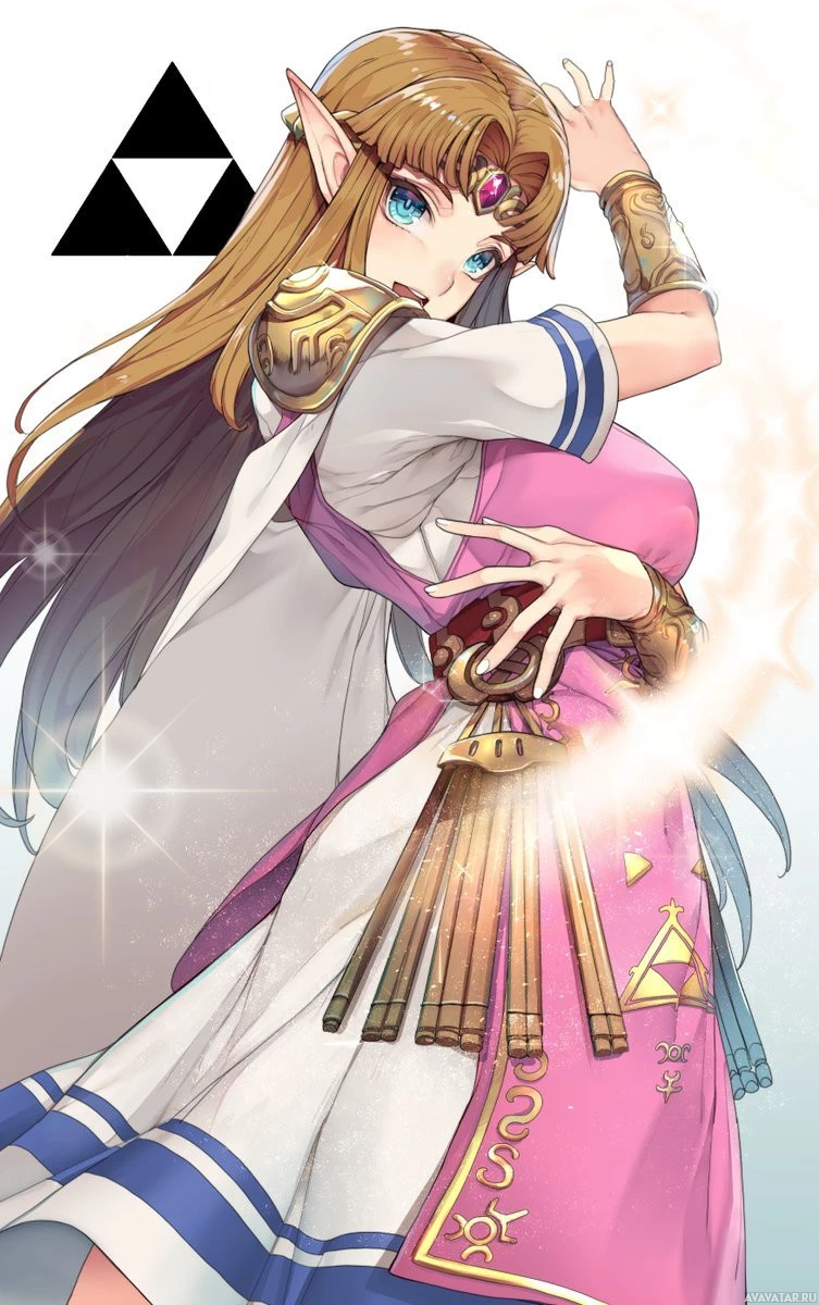 an animated character that resembles the design style of characters from "The Legend of Zelda" series. She appears to be