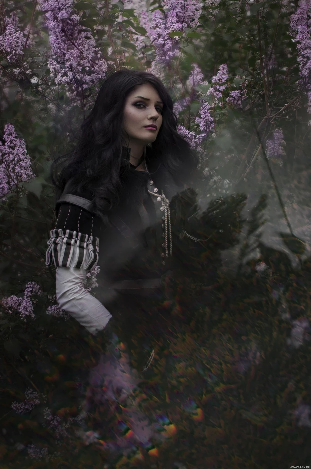 visual effect. The setting appears to be outdoors in a forest-like environment, contributing to the mystical and otherworldly atmosphere commonly associated with characters like Yennefer from "The Witcher" series.
