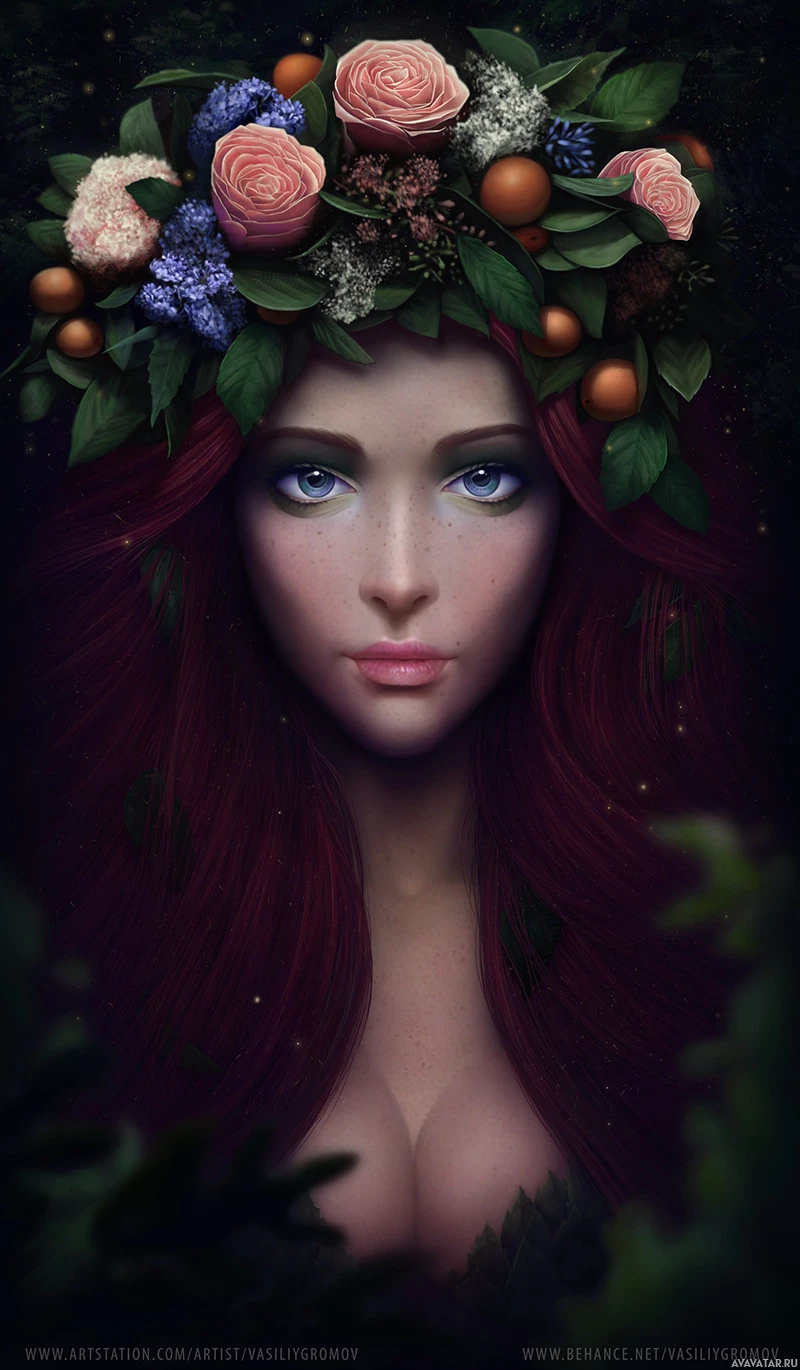 dark tones that might be indicative of nighttime or a moonlit environment. This image could be associated with themes such as fantasy, nature, beauty, and mythology.