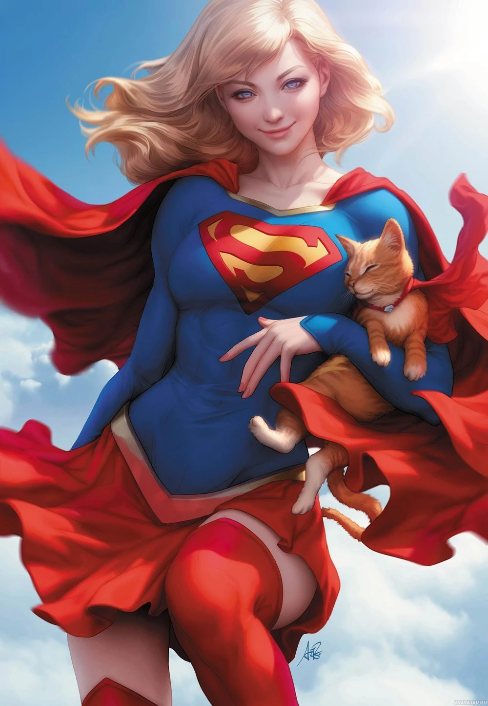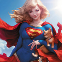 The image features a character in the style of Supergirl. She is wearing her