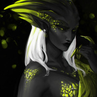 a fantasy character that appears to be a mermaid or a creature with aquatic qualities. The character has