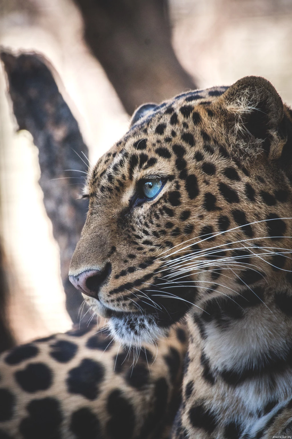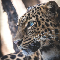 The image features a leopard. Leopards are known for their distinctive spotted coat patterns, and this particular individual has