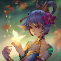 a glowing butterfly that seems to be transforming into another form or being magically created by the character's hands. The background suggests