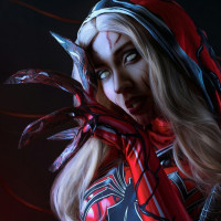 blonde hair and is posing in a dramatic manner, enhancing the intensity and fierceness associated with the character they are portraying.