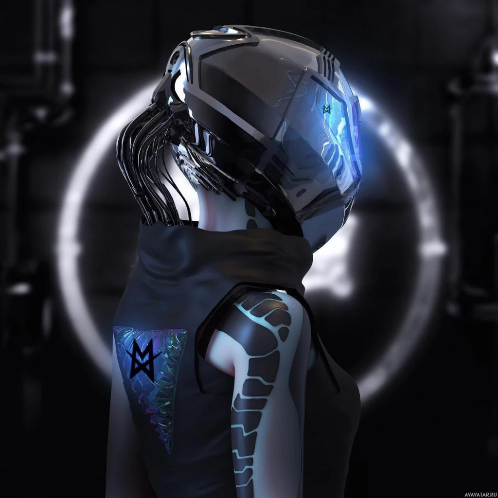 The image features a character with advanced robotic or cybernetic enhancements. The character is wearing a high-