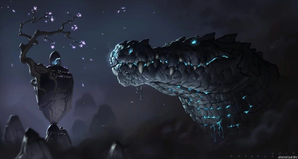 silhouettes of rocks and trees, adding to the wilderness of the scene. The image has a fantasy theme, likely inspired by mythical tales or